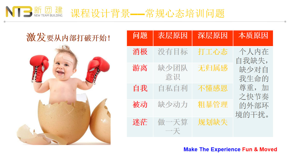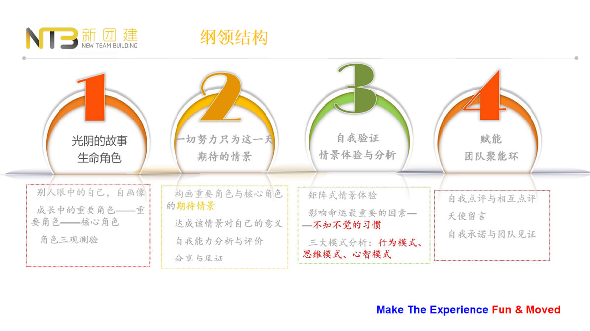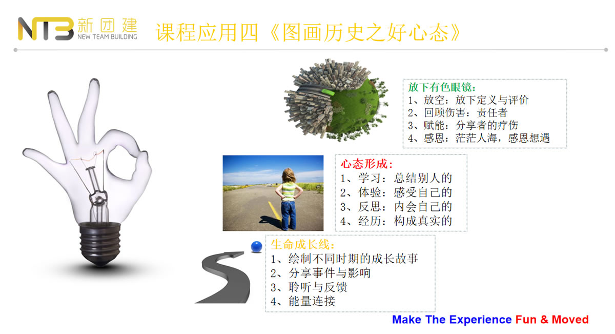 這是一場從效果出發(fā)而進行的一場體驗式培訓(xùn),課程設(shè)計思路分為6個階段進行,分別為:發(fā)現(xiàn)期待、情景體驗、自我察覺、深度反思、增驅(qū)賦能、落地推進,相比于傳統(tǒng)心態(tài)培訓(xùn)課堂講授式,我們更強調(diào)體驗性,以圖畫為載體,給個人和團隊帶領(lǐng)實質(zhì)性的效果培訓(xùn)。