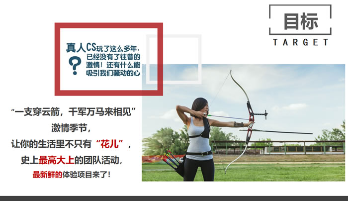 由美國引入ARCHERY TAG到本土,為每位參加者帶來傳統(tǒng)射箭活動的樂趣、體育精神之余,更能讓參與者感悟熔煉超強戰(zhàn)斗力團隊,打造優(yōu)秀團隊神射手的管理之道!