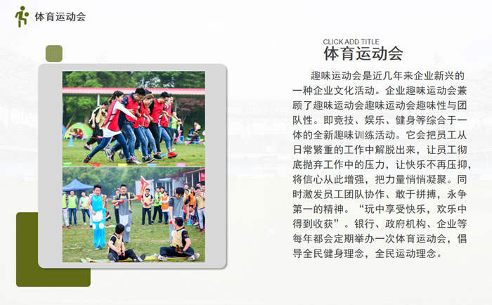 2、參與的形式:運動會內容形式新穎有吸引力、有參與性和趣味性,操作難度不高,區(qū)別于傳統(tǒng)的運動會方式。讓參加者樂于接受的方式,將心駐入,為活動添色彩;