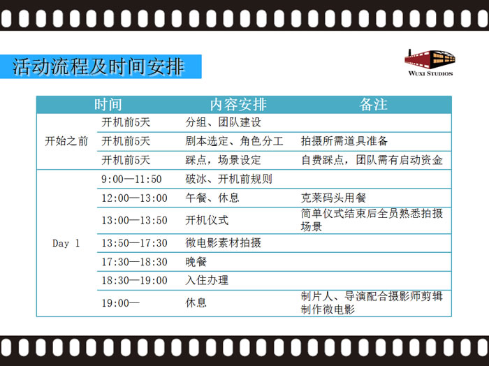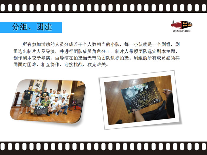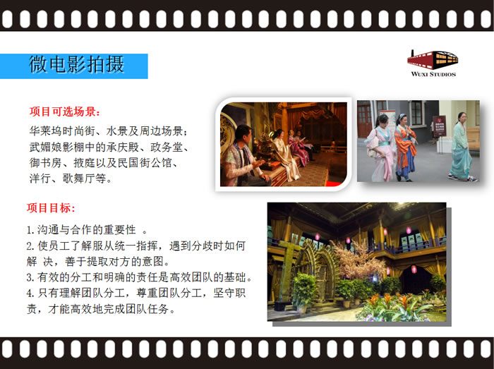 我們每個(gè)人心中都曾有偉大的夢(mèng)想,電影,是一個(gè)演繹夢(mèng)想的地方。雖然我們無法成為好萊塢的成員,但是我們一樣可以通過現(xiàn)代技術(shù)和專業(yè)的指導(dǎo)拍攝一部屬于自己的短片。請(qǐng)相信你身邊的這群人,他們都是非常有才華的人,并且能夠在這個(gè)系統(tǒng)工程中扮演好自己的角色。體驗(yàn)神秘的幕后工作,導(dǎo)演、場(chǎng)記、攝影、收音、編劇、演員,以及劇務(wù)等等,在這一系列工作中,需要利用到你們產(chǎn)品研發(fā)、項(xiàng)目管理的經(jīng)驗(yàn),還需要有很強(qiáng)的執(zhí)行力和創(chuàng)造力,盡情展現(xiàn)你們的才華吧。最后,我們還需要一次“奧斯卡”頒獎(jiǎng)典禮。作為一個(gè)優(yōu)秀的團(tuán)隊(duì),用一部微電影來呈現(xiàn)你們的故事,那是多么令人驕傲的事。對(duì)于一家偉大的公司,這些優(yōu)秀員工的創(chuàng)作將把企業(yè)文化推向更大的層面。